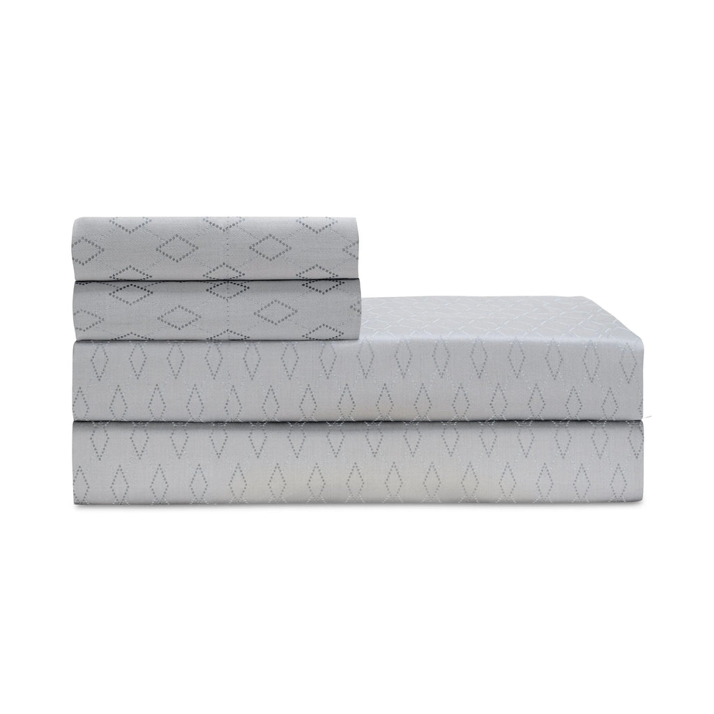 Les ensembles de draps Scotland comprennent un drap plat, un drap-housse et deux taies d'oreiller. (Remarques : les draps plats et les taies d'oreiller sont dotés d'un ourlet uni ; le drap-housse a une poche de 4,3 m. L'ensemble King comprend des taies King ; les ensembles Twin/Queen comprennent des taies Standard.)